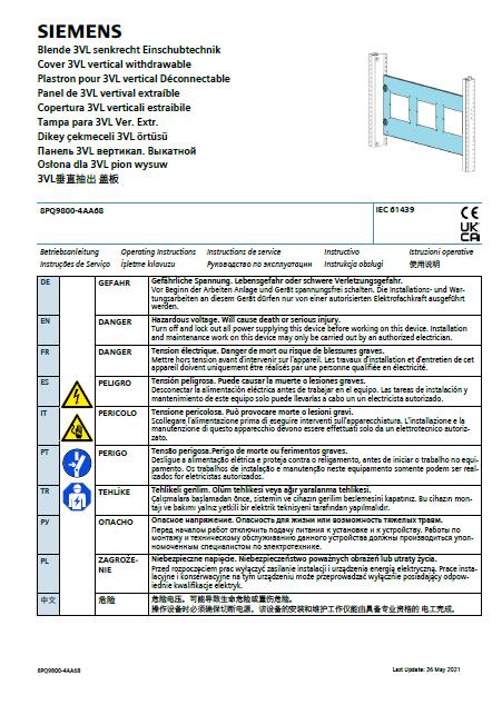 SIVACON S4 - 3VL垂直抽出 盖板